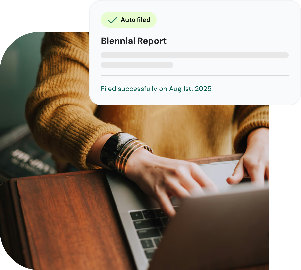 Palm prepares, files, and confirms your report, keeps you on schedule, and delivers proof of good standing.